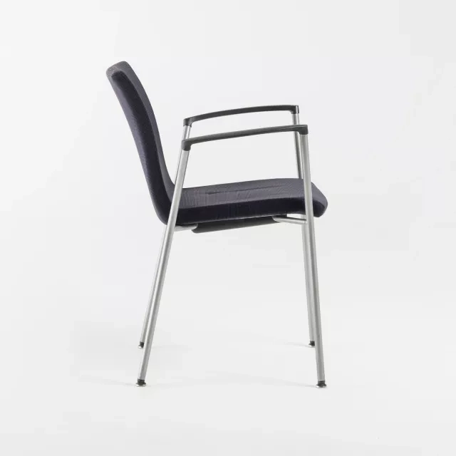 Stapelbarheten möjliggör snabb ommöblering och effektiv förvaring mellan pass. Armstöd ger extra stöd vid längre möten och workshops. Den tygklädda sitsen och ryggen bidrar till jämn komfort under arbetsdagen. Varje stol kontrolleras noggrant av våra tekniker innan vidareförsäljning. Konferensstolen Gorka från Akaba kan grupperas eller spridas ut efter kapacitetsbehov.