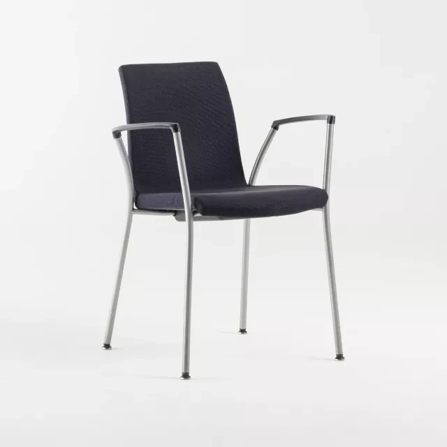 Konferensstolen Gorka från Akaba är stapelbar, tygklädd och utrustad med armstöd, formgiven av Jorge Pensi för flexibla mötesmiljöer. Den stapelbara konstruktionen möjliggör yteffektiv förvaring och snabb ommöblering i utbildningsrum, konferenssalar och multifunktionella ytor. Den tygklädda sitsen och ryggen ger behagligt stöd under längre pass och håller en enhetlig, professionell karaktär i rummet. Som återbrukad stol via Soeco är varje exemplar kontrollerat, rengjort och förberett för daglig användning i krävande verksamheter. Konferensstolen Gorka från varumärket Akaba stödjer cirkulära upphandlingar och förlänger möbelns livslängd med minskad resursanvändning. Modellen passar bra i mötesrum, projektzoner och besöksytor där slitstyrka, stapelbarhet och en diskret formgivning är prioriterade.