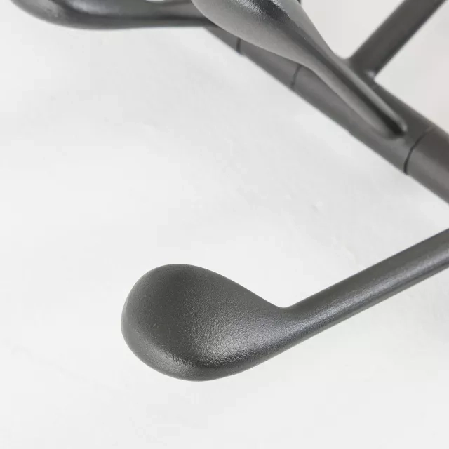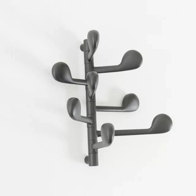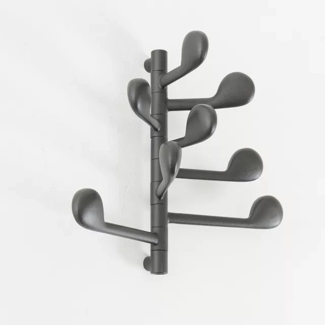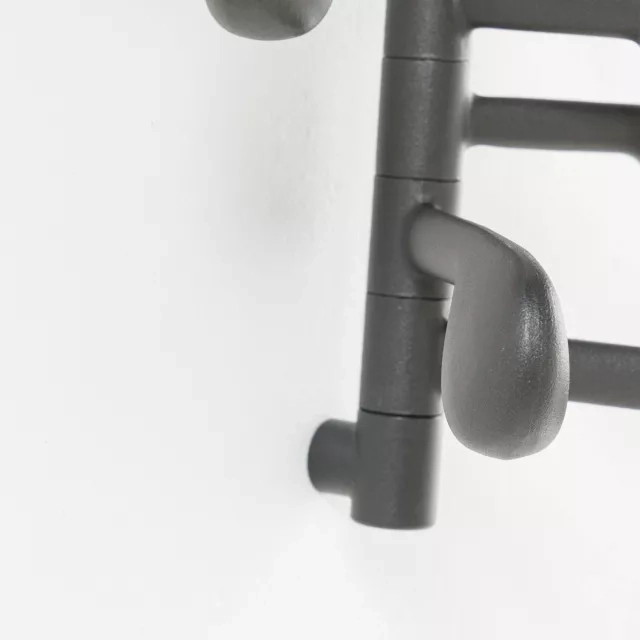 Arper Song är en väggmonterad, modulär klädhängare med åtta krokar som liknar musiknoter. Formgiven av Lievore Altherr Molina 2013 förenar den visuell rytm med ordning. Stången är i stål och krokarna i pulverlackerad aluminium, vilket ger bra slitstyrka för daglig användning. Klädhängaren Song från Arper frigör golvyta och håller entréer och korridorer prydliga. Denna begagnade Arper Song klädhängare stödjer en cirkulär inredning i kontor och offentliga miljöer. Den passar bra i receptioner, mötesrum och personalytor där pålitlig upphängning behövs. Song som väggmonterad klädhängare kombinerar hållbara material med en tydlig grafisk karaktär.