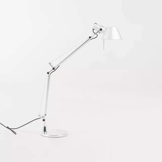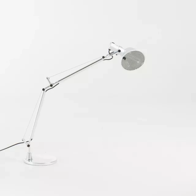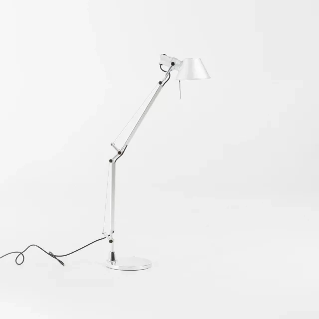 Bordslampan Tolomeo från Artemide ger fokuserat arbetsljus för moderna arbetsplatser. Den ledade armen och höj- och sänkbara konstruktionen gör ljusbilden enkel att rikta. Medföljande bikakeraster koncentrerar ljuset och minskar bländning på skärmar och dokument. Tolomeo är en bordslampa från varumärket Artemide som passar kontor, studios och gemensamma ytor. Italiensk design och pålitlig konstruktion ger stabil funktion i krävande miljöer. Denna återbrukade modell stödjer cirkulära inköp och minskar klimatpåverkan jämfört med nyproduktion. Välj bordslampan Tolomeo från Artemide när du vill höja ljuskomforten vid skrivbord och mötesplatser.