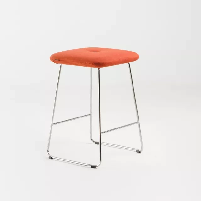 Den återbrukade barpallen Dundra, designad av Stefan Borselius för Blå Station, förenar stil med hållbarhet. Sitsen är klädd i ett mjukt rostrött tyg som ger hög komfort. Med sitt kromade medstativ och integrerade dubbelfotstöd erbjuder den både stabilitet och elegans. Som del av den Möbelfakta-märkta Dundra-serien från 2011, fungerar denna barpall utmärkt vid fikabordet eller i personalmatsalen. Kombinationen av designkvalitet och miljömedvetenhet gör barpallen Dundra till ett klokt val för moderna miljöer.