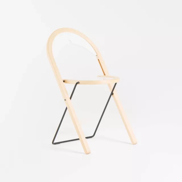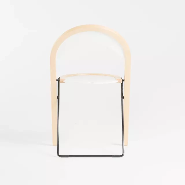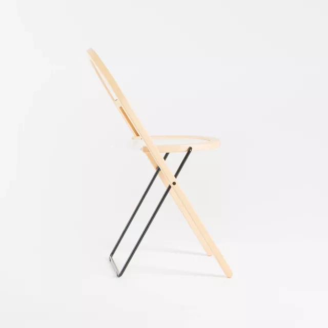 Fällstolen Sparta från Blå Station, formgiven av Börge Lindau, är en smart och yteffektiv sittlösning. Denna begagnade modell kombinerar björk och stål med svartlackerad sits. Den kan hängas på krok för snabb frigöring av golvyta och smidig städning. Lämplig för utbildning, eventytor och flexibla samarbetsmiljöer.