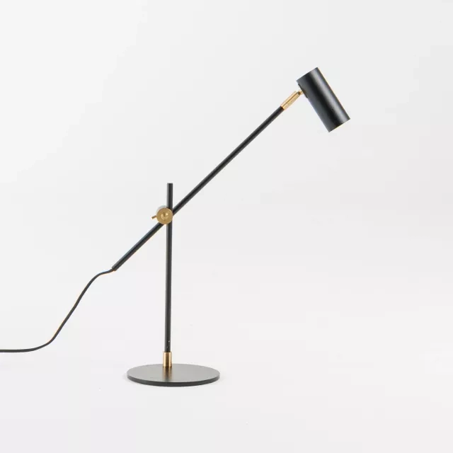 Bordslampan Lektor från Rubn, formgiven av Niclas Hoflin, har justerbar höjd, mattsvart yta och avstämda detaljer i mässing. Denna begagnade modell ger riktad arbetsbelysning som passar skrivbord, projektplatser och receptionsdiskar i professionella miljöer. Den robusta metallkonstruktionen är gjord för daglig användning där driftsäkerhet och enhetlig estetik är viktig. Lektor är en bordslampa från Rubn och möjliggör ergonomisk placering av ljuset som minskar bländning på skärmar och dokument. Den dova svarta ytan samspelar väl med moderna kontor, medan mässingsdetaljerna tillför en igenkännbar karaktär. Att välja Lektor från Rubn som återbrukad belysning förlänger produktens livslängd och stödjer cirkulära inköpsmål. Varje exemplar rengörs och funktionstestas noggrant för stabil drift i din kontorsmiljö. Den kompakta foten frigör yta för tangentbord och handlingar.