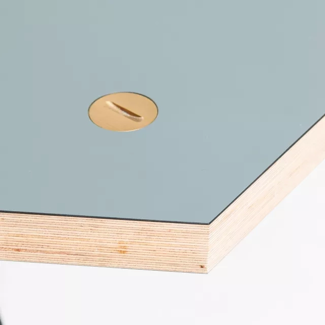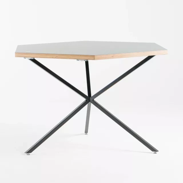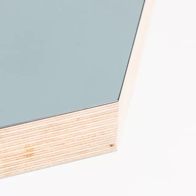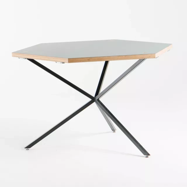 Cafébordet NEB Hexagon från No Early Birds, formgivet av Per Söderberg, har en bordsskiva i grönt laminat och underrede i svart pulverlackerat stål. Den hexagonala formen gör att flera bord kan kopplas samman till modulära ytor för café, pausrum, mötespunkter och event. Laminatet är lätt att rengöra och den robusta stommen ger stabilitet i miljöer med hög belastning. Som återbrukat cafébord stödjer NEB Hexagon cirkulära inköp och förlänger möbelns livslängd med låg resursåtgång. Cafébordet NEB Hexagon från varumärket No Early Birds passar bra i personalmatsal, coworking och reception där flexibilitet är viktigt. Varje bord kvalitetstestas av Soecos tekniker för trygg funktion i professionella miljöer.
