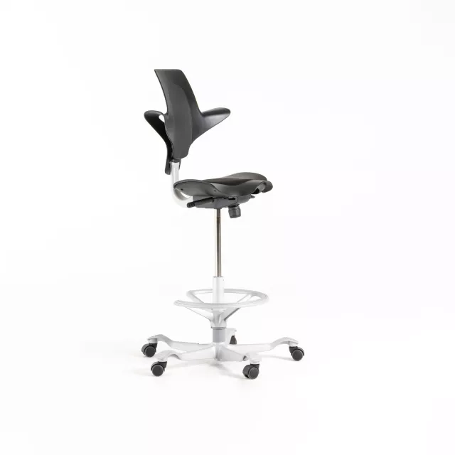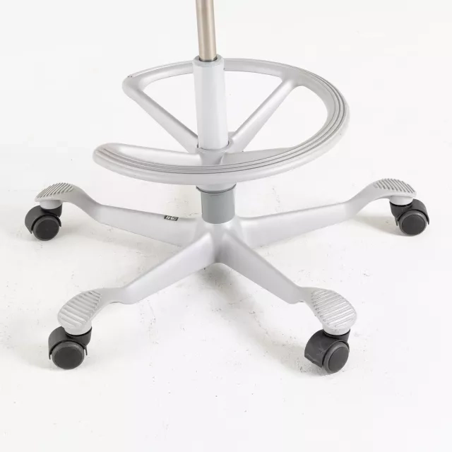 Den høje gaslift giver et udvidet højdeinterval, som passer til hæve-/sænkeborde og projektflader. Fodbøjlen giver stabil støtte ved arbejde i højere positioner. Det højdejusterbare sæde gør det let at tilpasse til forskellige brugere og opgaver. Betjeningen er letforståelig og gør det nemt at variere i løbet af dagen.