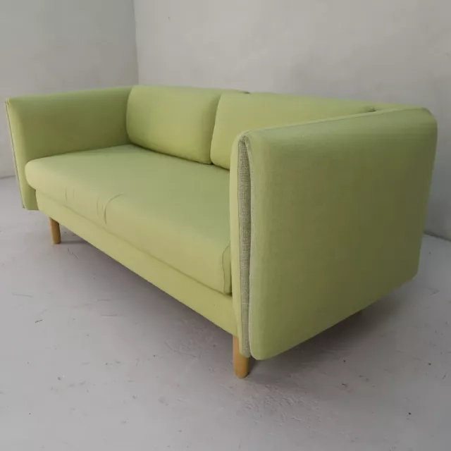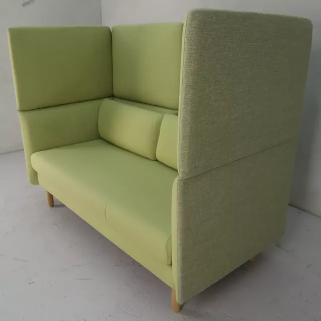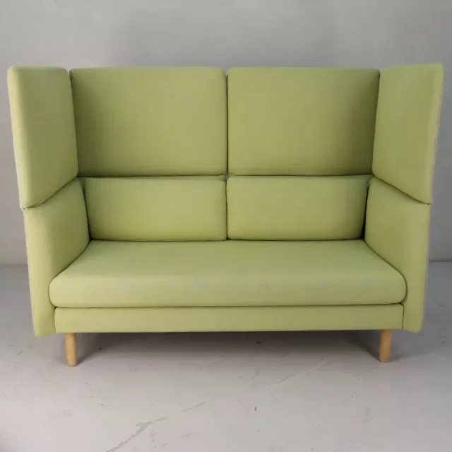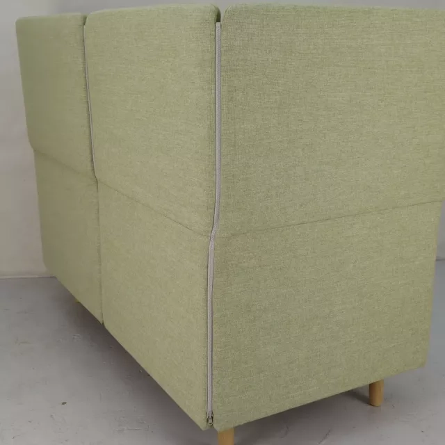 Denne genbrugte 2-personers sofa fra norske LK Hjelle er betrukket med et lysegrønt stof og tilbyder fleksibilitet med en justerbar ryg, som nemt skifter mellem lav og høj position. Designet muliggøres af modellens lynlås og integrerede magneter, hvilket forbedrer både stil og funktionalitet. Sofaen passer perfekt i venteværelset, entréen eller personalerummet og skaber en indbydende atmosfære med sit elegante og bæredygtige design.
