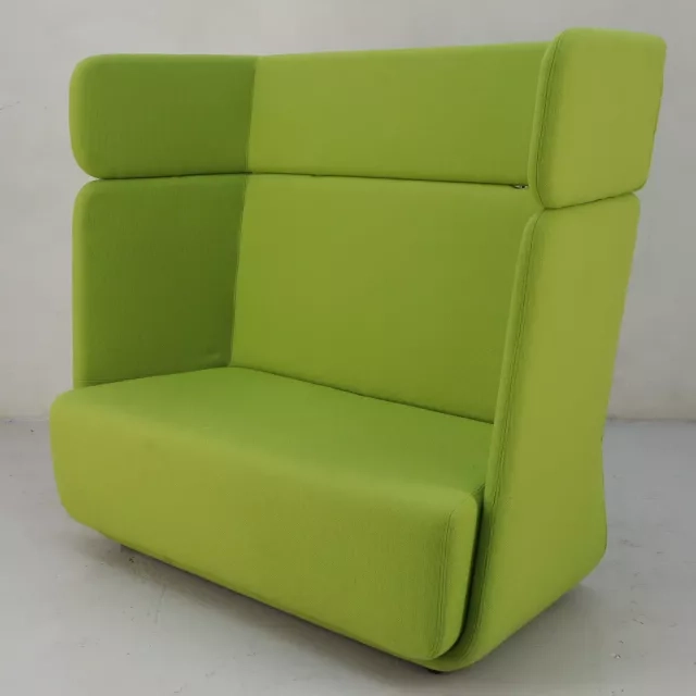 Basket High, en lydabsorberende 2-personers sofa fra Softline, designet af Matthias Demacker, forener stil og funktion på imponerende vis. Denne genbrugte sofa, betrukket med grønt stof, tilbyder en rolig siddeløsning, der passer lige godt i loungen som i entréen. Dens høje ryg er designet til at absorbere lyd, hvilket skaber et roligt miljø, der er velegnet til moderne kontorområder, hvor komfort og æstetik prioriteres.