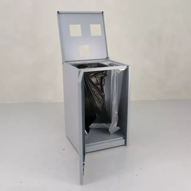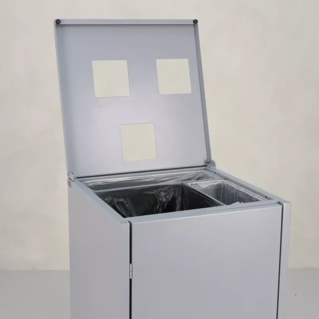 Genbrugt 3-fraktions miljøstation fra Basic Design XL er et miljøvenligt valg, fremstillet hovedsageligt af genanvendeligt stål for at understøtte bæredygtige affaldshåndteringsløsninger i professionelle miljøer. Med en kapacitet på 165 liter og tre forskellige beholdere gør den det nemt at sortere effektivt allerede ved kilden.