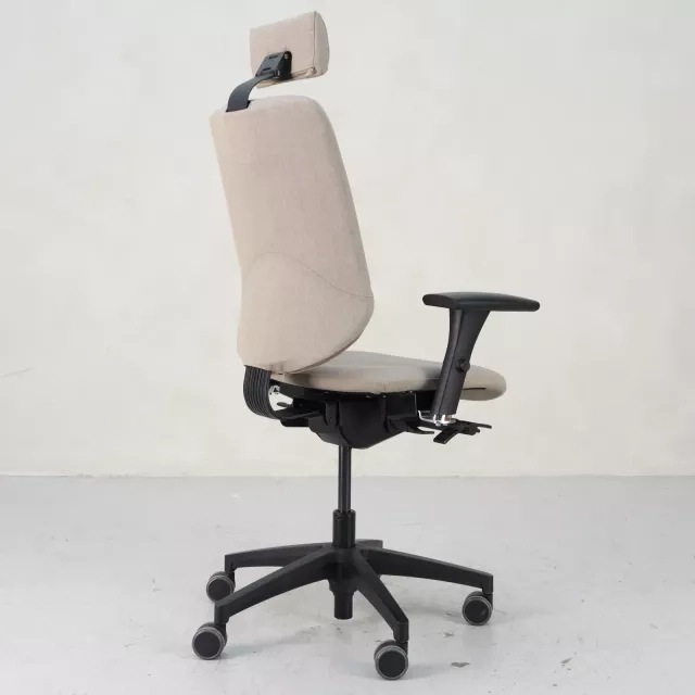 Kontorstolen EVE 300 fra Edsbyn er en ergonomisk stol, der egner sig fremragende til lange arbejdsperioder. Med intuitive betjeningsgreb kan du nemt foretage personlige justeringer for at opnå en aktiv og behagelig siddestilling. Denne skrivebordsstol er udstyret med justerbare arm- og nakkestøtter og er desuden fuldpolstret i et slidstærkt, beige stof – hvilket bidrager til både stil og holdbarhed ved daglig brug i et krævende arbejdsmiljø.
