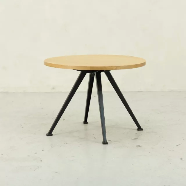 Pyramid Coffee Table 51 fra HAY er et velkendt eksempel på Wim Rietvelds mid-century-design fra 1950’erne. Dette genbrugte sofabord har en bordplade i massiv eg, kombineret med et stilrent stel i sortlakeret stål, hvilket gør det til et holdbart alternativ til forskellige kontormiljøer. Dets distinkte design forener funktionalitet med en tidløs æstetik og bidrager til en bæredygtig indretning ved at give nyt liv til eksisterende materialer.