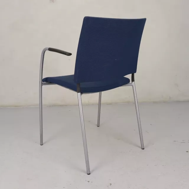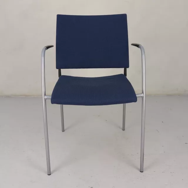 Karmstolen Spira fra Lammhults, designet af den kendte danske duo Johannes Foersom & Peter Hiort-Lorenzen i 2004, kombinerer elegance med funktionalitet. Denne genbrugte, stabelbare stol er fuldpolstret i et livligt blåt stof, hvilket gør den til et bæredygtigt valg til moderne møderum. Det gennemtænkte design og materialer af høj kvalitet sikrer både holdbarhed og komfort, velegnet til forskellige professionelle miljøer.