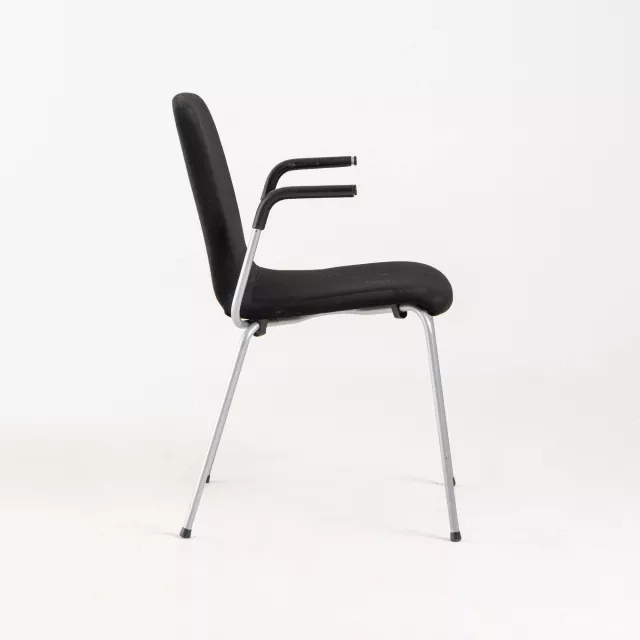 Denne stabelbare konferencestol er et alsidigt valg til konferencerum og mødelokaler. Stolen er fuldpolstret i sort stof og har armlæn for øget komfort under lange møder. Den er designet til at være praktisk og let at stable, hvilket optimerer opbevaring i dynamiske miljøer.
