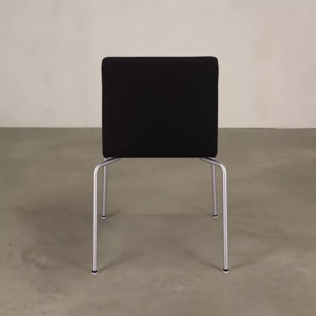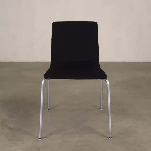 Oplev brugervenligheden og charmen ved konferencestolen Bombito fra det velrenommerede mærke Skandiform. Skabt af den dygtige Jonas Lindvall, kombinerer denne brugte og upcyklede Bombito-stol stilfuldt sort stof med robuste grå metalben. Den er designet til nem stabling, hvilket giver fleksibilitet og pladsbesparende opbevaring til alle mødelokaler. Stolen går ikke på kompromis med komforten, hvilket gør den velegnet til lange møder og konferencer.