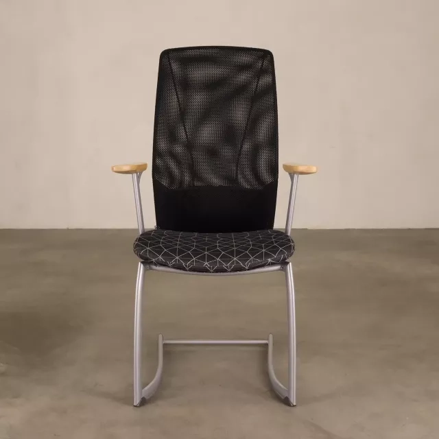 Konferencestolen Plus fra Kinnars er et meget værdsat valg til professionelle mødemiljøer. Med sæde og ryg i sort mesh tilbyder den overlegen komfort og tilfører arbejdspladsen et moderne præg. Monteret på meder sikrer dette design både stabilitet og et nutidigt æstetisk udtryk, hvilket gør den velegnet til bestyrelseslokaler og samarbejdsområder.