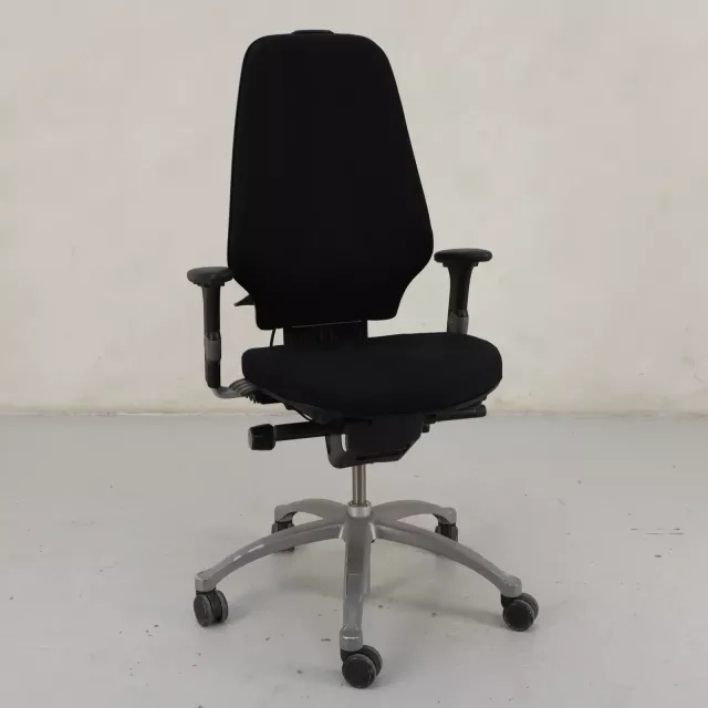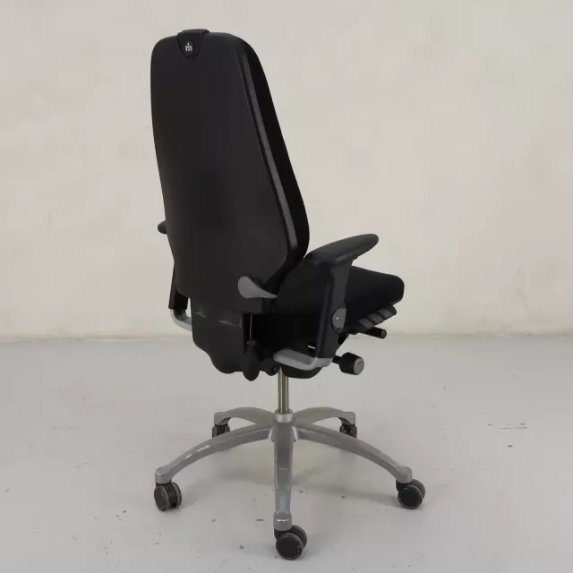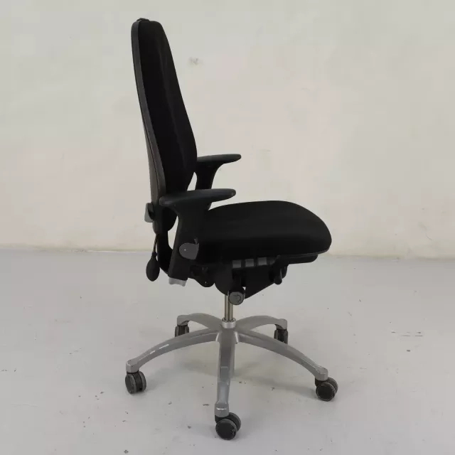 Den ergonomiske og populære arbejdsstol Logic 400 fra RH/Flokk er designet af Flokk Design Team. Betrukket med et slidstærkt, sort stof, passer denne stol godt til krævende arbejdsmiljøer.