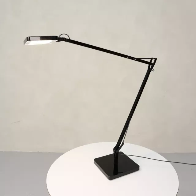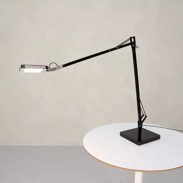Skrivebordslampen Kelvin LED Base fra Flos er et bevis på moderne design og funktionalitet, skabt af de anerkendte designere Antonio Citterio og Toan Nguyen i 2009. Denne genbrugte lampe i sort aluminium er ikke blot et elegant tilskud til alle kontormiljøer, men også et bæredygtigt valg for dem, der prioriterer cirkulært design. Den tilbyder en dæmpningsfunktion med smidig touch-betjening på lampehovedet, hvilket muliggør forskellige lysniveauer, så den passer til ethvert arbejdsmiljø.