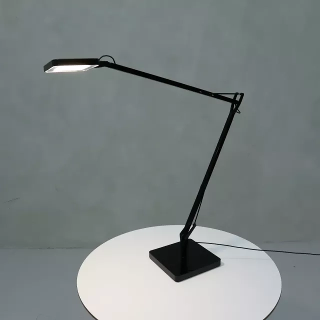 Selvom lampen kan vise visse brugsspor som mindre ridser på foden, forbliver den en robust og sofistikeret belysningsløsning til professionelle miljøer. Kombinationen af innovativt design og de praktiske fordele ved genbrug gør denne skrivebordslampe Kelvin LED Base fra Flos til et velegnet og miljøvenligt alternativ for alle kontorer, der søger stilfuld og bæredygtig belysning.