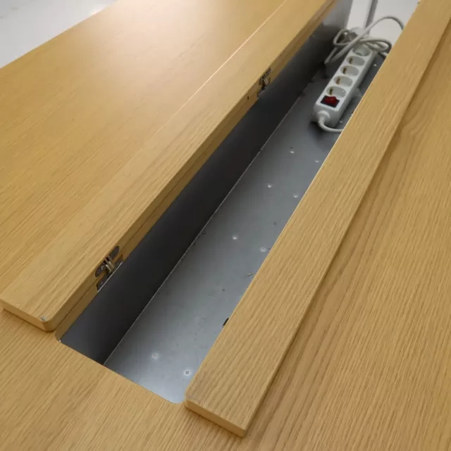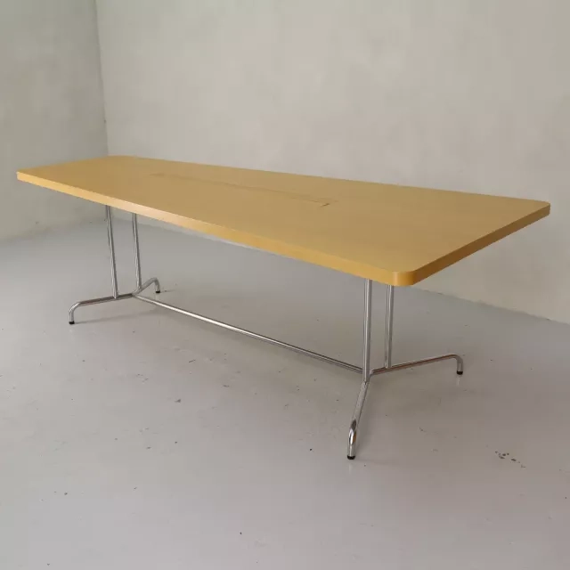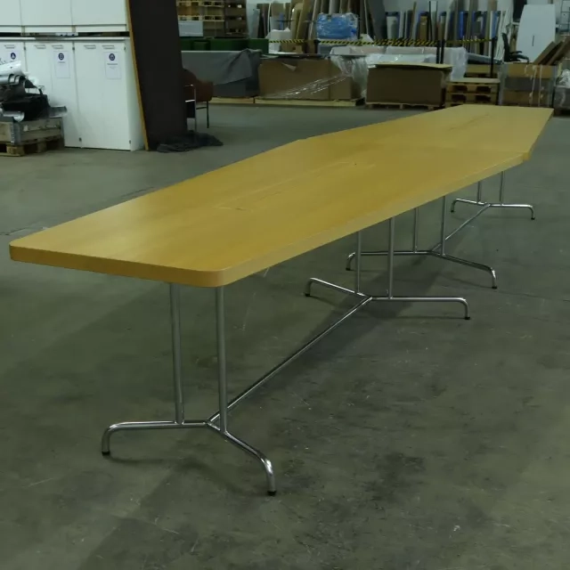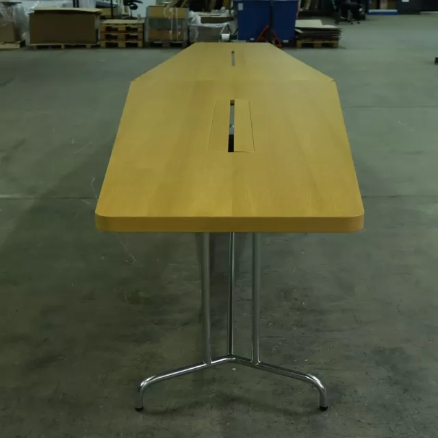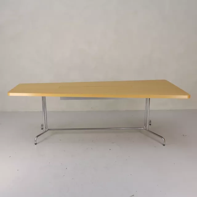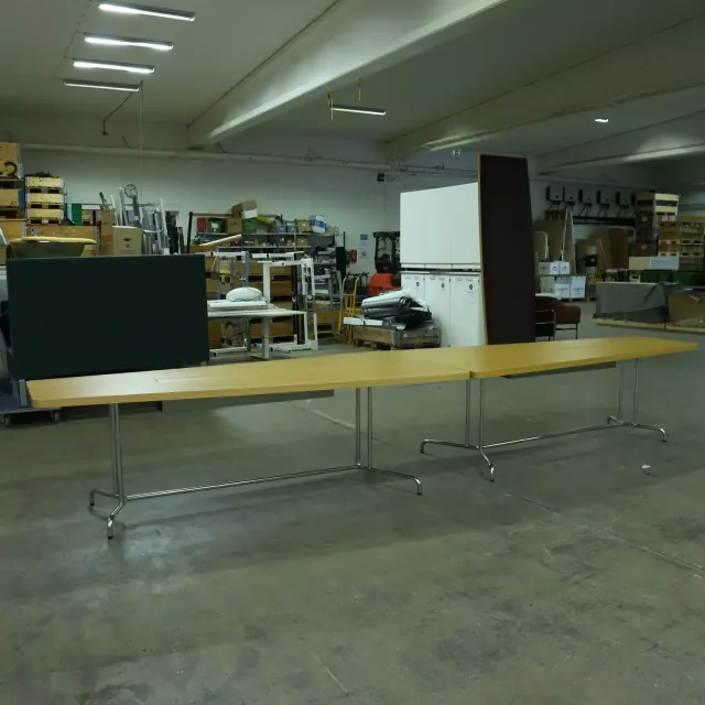 Giv dit mødelokale en følelse af bæredygtig elegance med dette genbrugte konferencebord fra Skandiform. Dets robuste design sikrer holdbarhed og et varigt indtryk i alle erhvervsmiljøer.