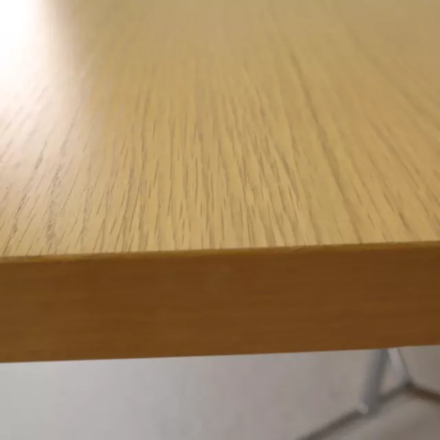 Dette genbrugte konferencebord fra Skandiforms Jeffersson-serie forener funktionalitet med elegance. Med sin forarbejdede konstruktion i egetræsfinér og en ramme i forkromet stål passer det perfekt i forskellige professionelle miljøer. Bordets fleksibilitet gør, at det kan stå alene, placeres op ad en væg eller sættes to og to og dermed danne en flade på 4600 mm, hvilket er ideelt til forskellige konferencebehov.