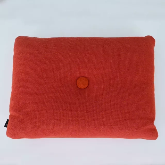 Dot Cushion fra HAY er en førsteklasses kombination af skandinavisk design og praktisk funktionalitet. Fremstillet med polyesterfyld af høj kvalitet og Kvadrats uldstof lover denne pude holdbarhed og æstetisk appel. Dens kendetegn er de farvede, stofbeklædte knapper, hvilket gør den til et ikon inden for interiørdesign. De robuste materialer sikrer lang holdbarhed, hvilket gør den velegnet til kontormiljøer, der søger en elegant men funktionel indretningsdetalje.