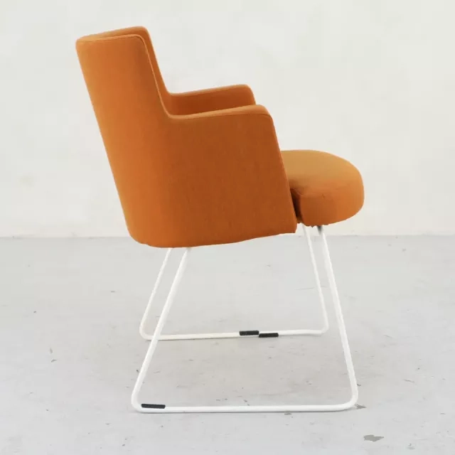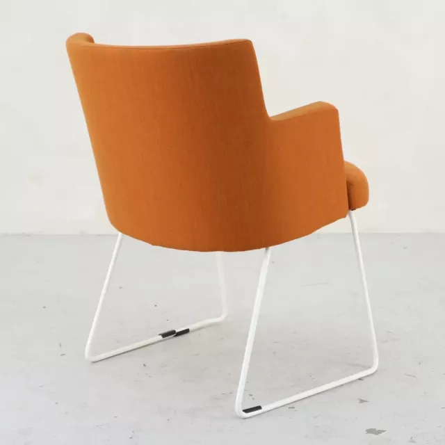 Lænestolen Cape fra Johanson Design, skabt af Team Johanson, passer lige så godt i konferencerum som i mødemiljøer. Fuldt polstret i et iøjnefaldende orange stof med hvidt stel, tilbyder denne lænestol en dristig men elegant siddeoplevelse, der forener stil og funktionalitet til perfektion. Dens unikke design tilfører ikke blot farve i professionelle miljøer, men bekræfter også en forpligtelse til kvalitetshåndværk.