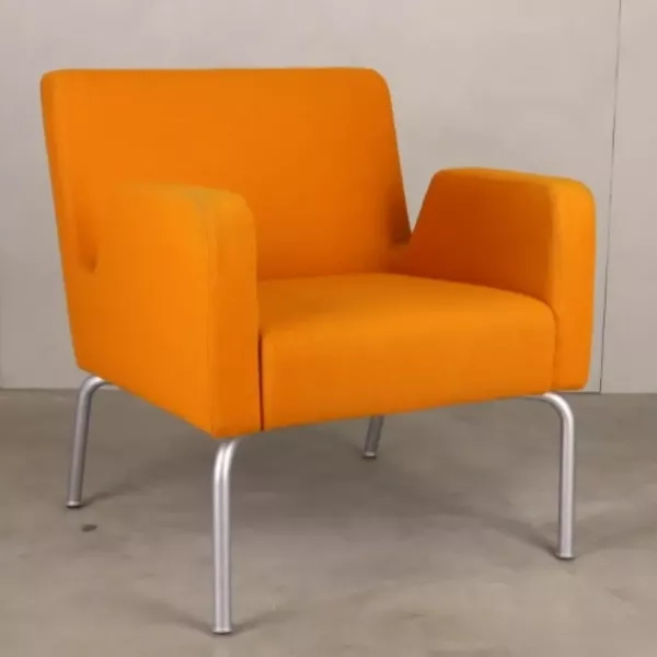Den genbrugte lænestol Judi fra Sofacompany, designet af Cathrine Rudolph, tilbyder en unik kombination af elegance og holdbarhed til alle kontor- eller receptionsmiljøer. Betrukket med et blåt, slidstærkt stof er denne lænestol ikke blot skabt til lang levetid, men har også en drejefod, der muliggør 360-graders rotation, hvilket tilfører både funktionalitet og fleksibilitet i dit arbejdsmiljø.