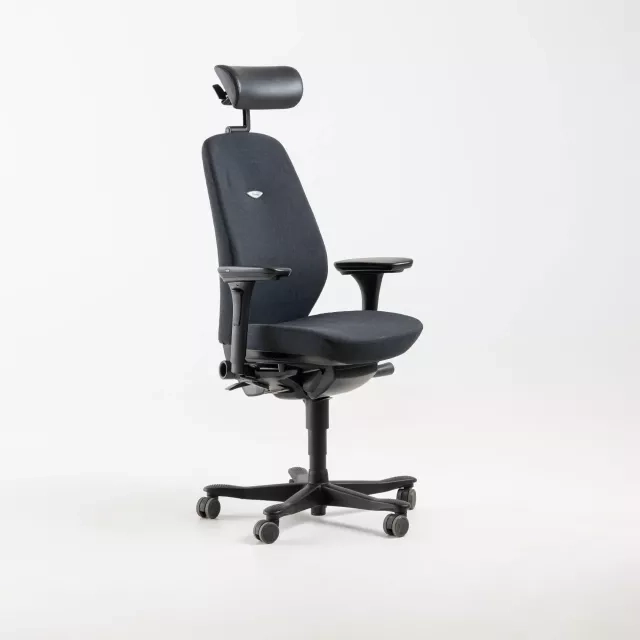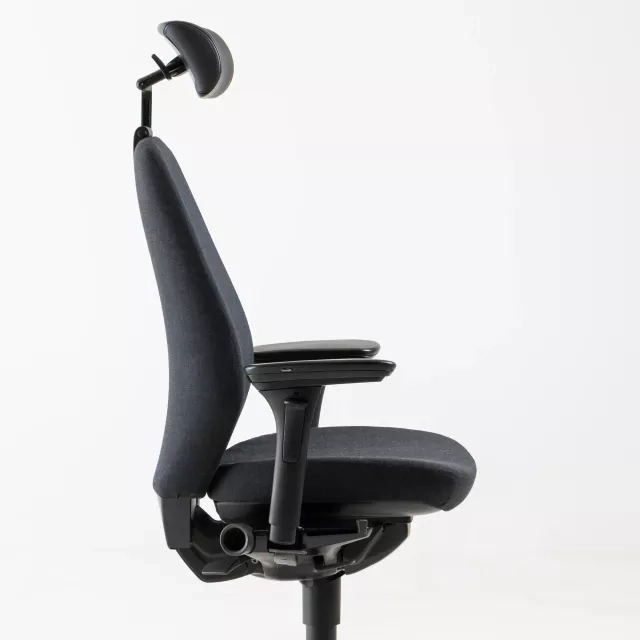 Den ergonomiske kontorstol 9000 fra Kinnarps, designet af Johan Larsvall og Torbjörn Höjer, er fuldpolstret i et slidstærkt sort stof og har en nakkestøtte i sort læder. Denne pålidelige og alsidige arbejdsstol har justerbare armlæn samt en justerbar nakkestøtte, hvilket bidrager til individuel komfort og fremmer god ergonomi. Som et populært valg i forskellige kontormiljøer kendetegnes den af sine robuste funktioner og tilpasningsmuligheder, hvilket gør den velegnet både til lange arbejdsdage og dynamiske kontorlandskaber.