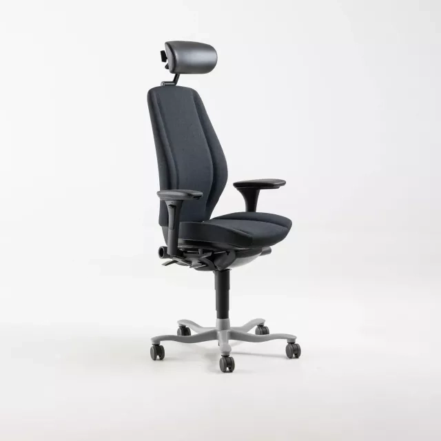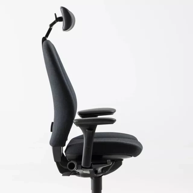 Kontorstolen 9000 fra Kinnarps, designet af Johan Larsvall & Torbjörn Höjer, udmærker sig som en alsidig siddeløsning til professionelle miljøer. Den er fuldt polstret i et slidstærkt gråt stof med nakkestøtte i sort læder og tilbyder flere personlige justeringsmuligheder, inklusive justerbare armlæn og nakkestøtte, for at sikre optimal komfort under lange arbejdsdage.