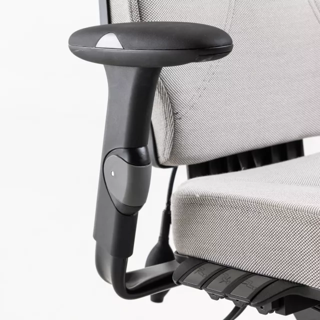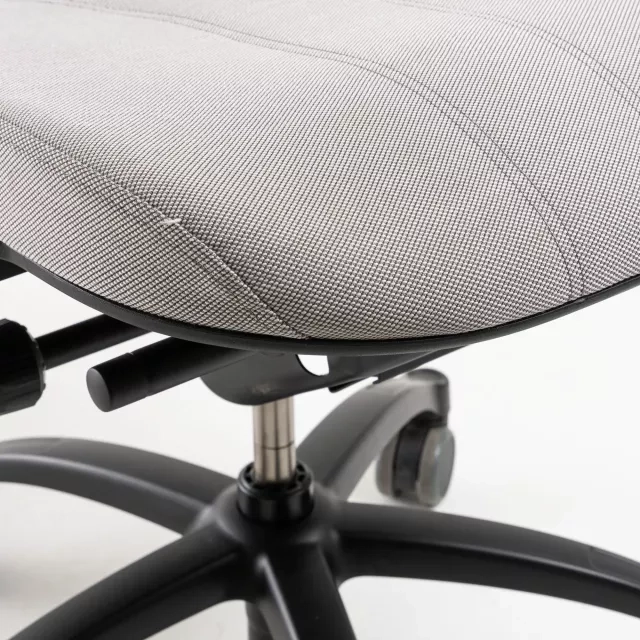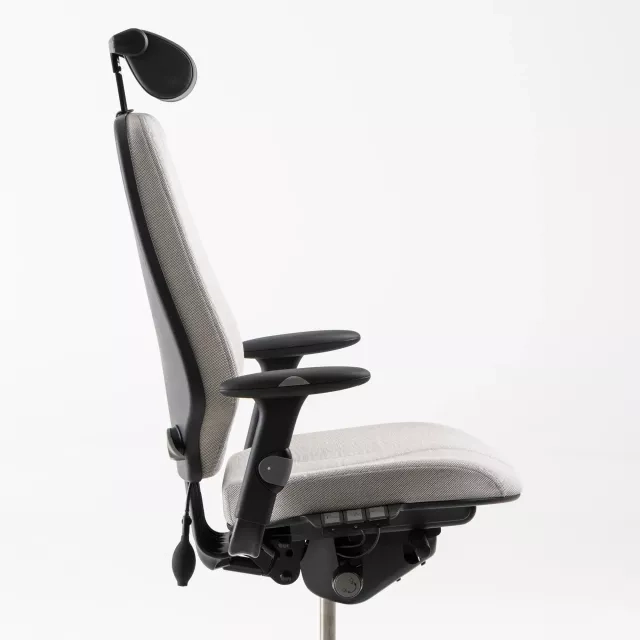 XL-modellen har et lidt bredere og dybere sæde sammenlignet med standardudgaven, med målene 485 mm i bredde og 515 mm i dybde. Med sit betræk i Steelcut-stof fra Kvadrat forener Logic 400 XL bæredygtighed med ergonomiske funktioner og er et eksempel på cirkulært design i kontormiljøer.