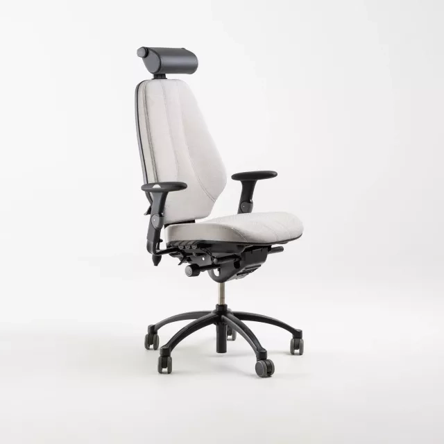 Skrivebordsstolen Logic 400 XL fra RH kombinerer ergonomisk design med bæredygtighed. Designet af Flokk Design Team har denne genbrugte stol armlæn, der giver ekstra støtte gennem arbejdsdagen. Med en justerbar lændestøtte og sort lædernakkestøtte giver den optimal komfort.
