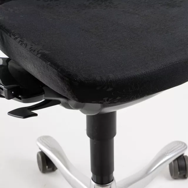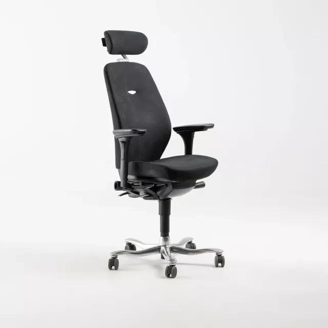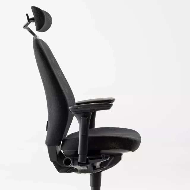 Den ergonomiske kontorstol 9000 fra Kinnarps, designet af Johan Larsvall & Torbjörn Höjer, er fuldt polstret i et slidstærkt sort mønstret stof med nakkestøtte i sort læder. Denne pålidelige kontorstol er udstyret med justerbare armlæn samt en justerbar nakkestøtte, hvilket giver en alsidig løsning til at opretholde god ergonomi. Stolens mange personlige indstillingsmuligheder gør den til et populært valg i professionelle miljøer.