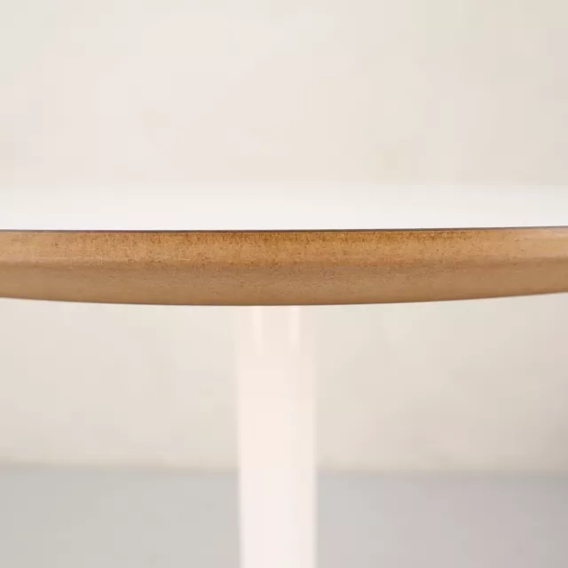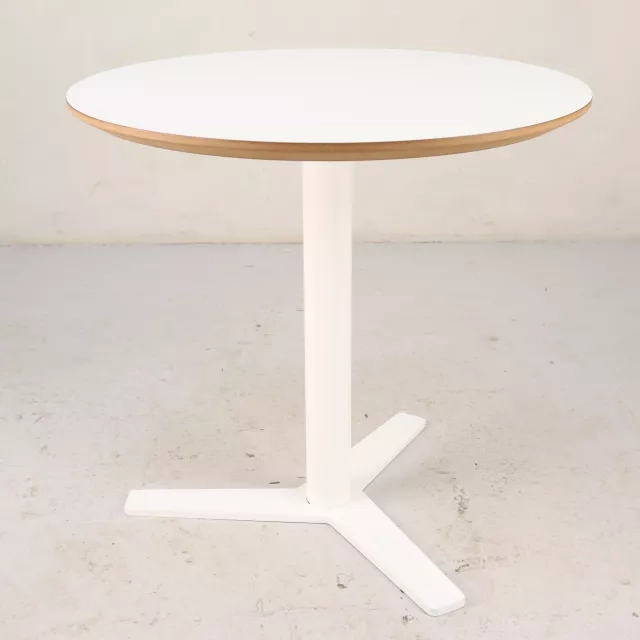 Det runde sofabord B-53, designet af Tim Alpen Design for Balzar Beskow, er et elegant supplement til fællesområder eller receptioner. På trods af små brugsspor bevarer det sit højkvalitetsudtryk, hvilket gør det til en klog investering for kontorer, der søger stilfulde og holdbare løsninger.