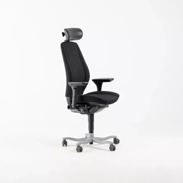 Den ergonomiske kontorstol 9000 fra Kinnarps er fuldt betrukket med et slidstærkt sort stof med nakkestøtte i sort læder. Disse designvalg bidrager til både stil og funktionalitet, og stolen er et værdifuldt supplement til de fleste professionelle miljøer. Designet af Johan Larsvall & Torbjörn Höjer er stolen udstyret med justerbare armlæn og en justerbar nakkestøtte for optimal komfort og støtte gennem arbejdsdagen.