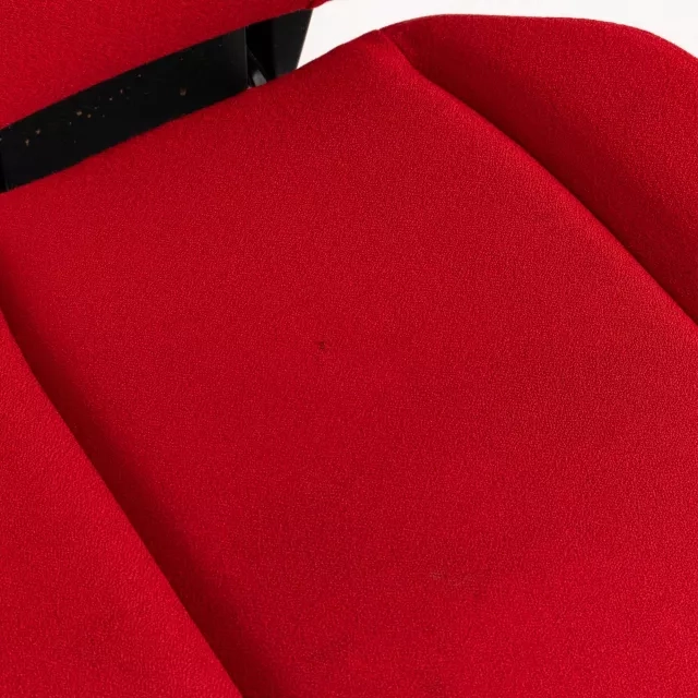 Den ergonomiske skrivebordsstol 9000 fra Kinnarps, designet af Johan Larsvall og Torbjörn Höjer, er betrukket med et iøjnefaldende rødt stof og har en sort nakkestøtte i læder. Den alsidige og populære kontorstol tilbyder justerbare armlæn og nakkestøtte, hvilket fremmer fremragende ergonomi gennem sine tilpasningsmuligheder. En millimeterstor sort prik på sædet er permanent, men prisen er nedsat, hvilket giver en god mulighed for at investere i kvalitet uden at sprænge budgettet.