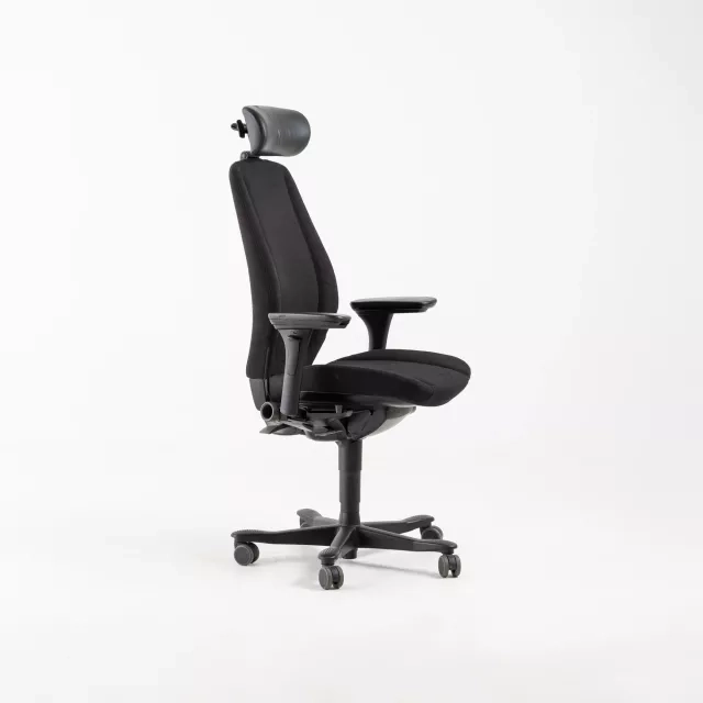 Kontorstol 9000 fra Kinnarps er en gennemtænkt ergonomisk skrivebordsstol designet af Johan Larsvall og Torbjörn Höjer. Med sin elegante helpolstring i sort stof og en kontrasterende nakkestøtte i sort læder forener denne stol stil og funktionalitet. Justerbare armlæn og nakkestøtte tilbyder personlig komfort, hvilket gør den til et alsidigt valg for ethvert arbejdsmiljø.