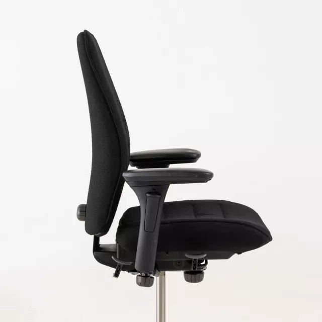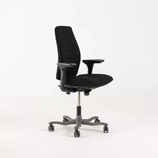 Den ergonomiske arbejdsstol 5000 fra Kinnarps er designet til at forbedre komforten i professionelle miljøer. Med justerbare armlæn tilbyder denne brugervenlige kontorstol flere indstillingsmuligheder for en kropsvenlig siddestilling. Stolen er fuldpolstret i sort stof med et gråt fodkryds, og dens design er både moderne og funktionelt. Formgivet af Johan Larsvall og Torbjörn Höjer støtter stolen ikke blot god ergonomi, men repræsenterer også en forfinet skandinavisk designfornemmelse.