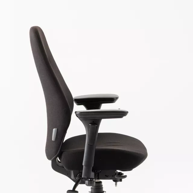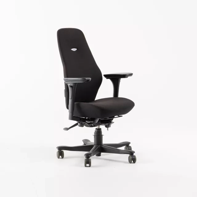 Kontorstolen Plus 6000 fra Kinnarps, designet af Björn Alge, er udstyret med FreeFloat™-mekanisme, der fremmer bevægelighed og ergonomi på arbejdspladsen. Med slidstærkt sort stofbetræk og et matchende sort stel tilbyder stolen både robusthed og en stilren æstetik, som passer til de fleste professionelle miljøer. Nye armlæn er tilføjet for at forbedre ergonomien, hvilket gør stolen tilpasningsdygtig og behagelig under lange arbejdsdage uden at gå på kompromis med designet.