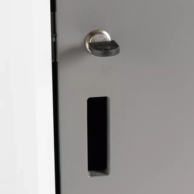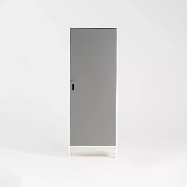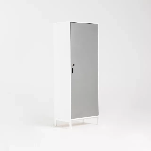 Ett återbrukat skåp bidrar till cirkulär användning av resurser och förlänger produktens livslängd. Varje enhet är kontrollerad och rengjord före leverans. Passar bra i kontor, skola, vårdmiljö, lager och projektkontor med behov av klädförvaring.