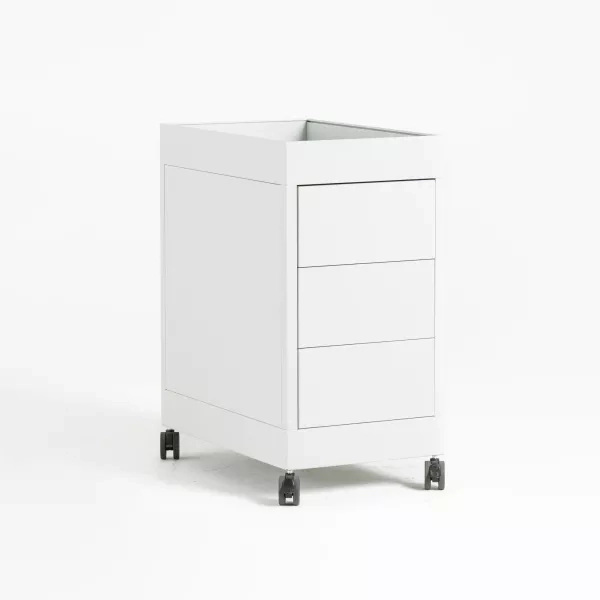 Lockable mobile pedestal from Edsbyn, pre-owned. Compact, desk-height storage on castors that secures documents and supports circular office fit-outs.