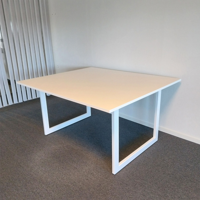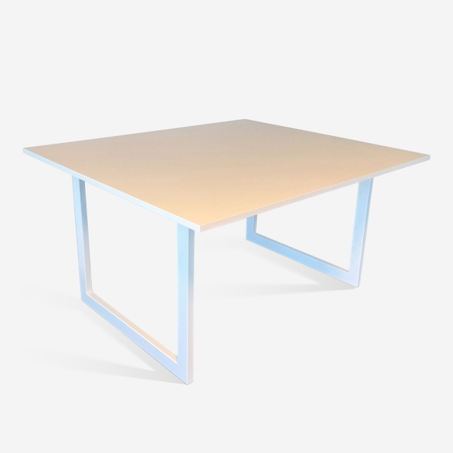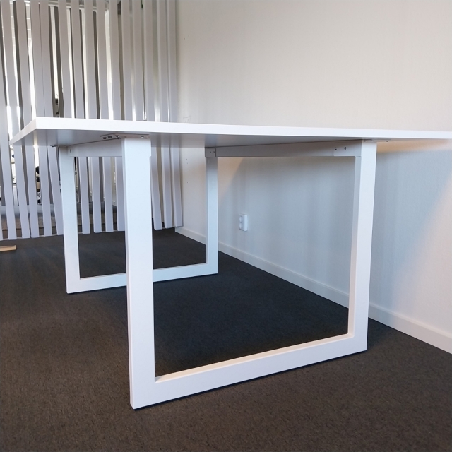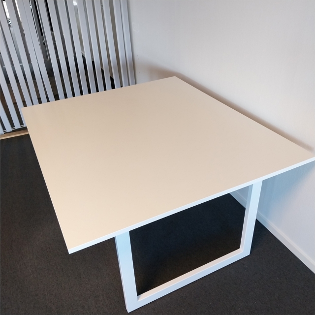Skiva i vitlaminat. Vitlackerat metallstativ.