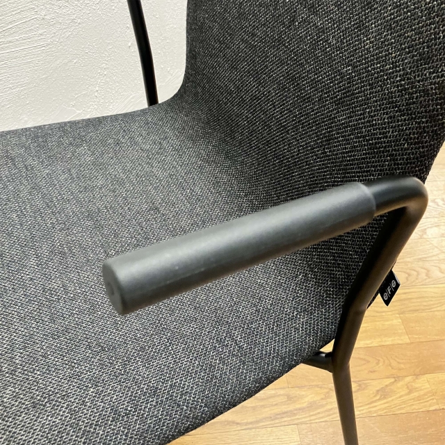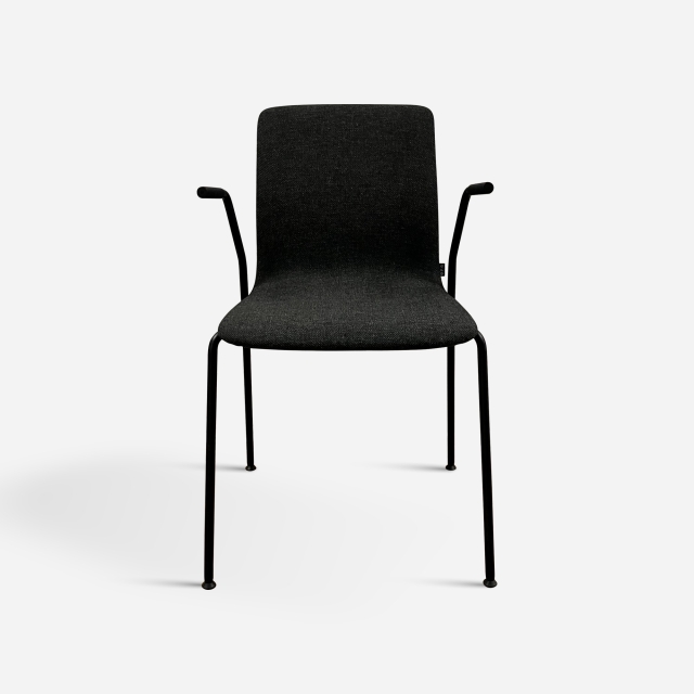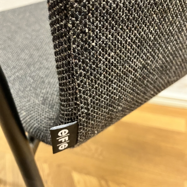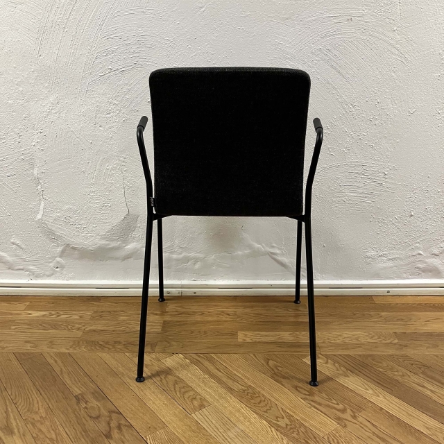 Karmstolen Nova från EFG, klädd i tyget Re-Wool 0198 från Kvadrat. Svartlackerat metallstativ.