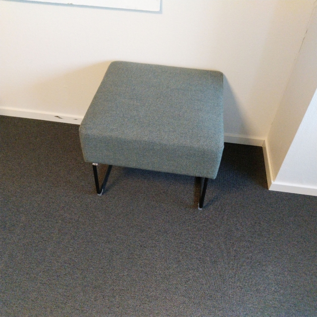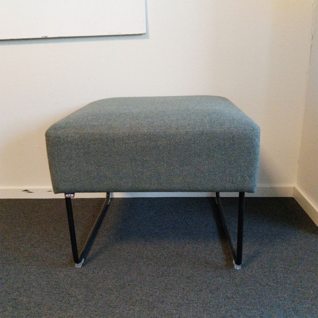 Klädd i tyg Kvadrat, Melange Nap 951. Svartlackerat medstativ.