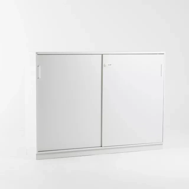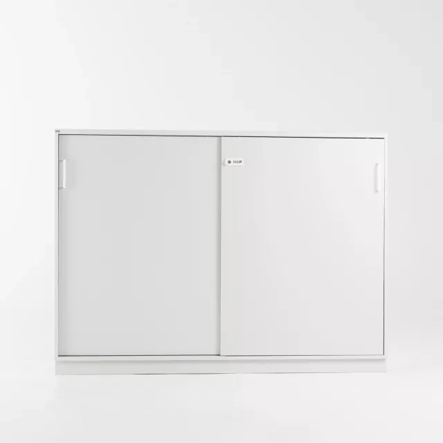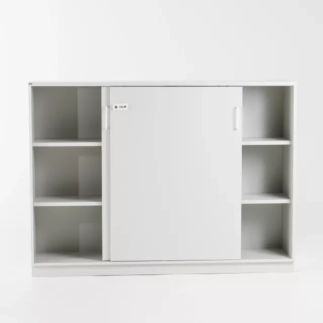 Detta skåp med skjutdörrar från EFG ger säker och yteffektiv kontorsförvaring med låsbara dörrar. Skjutdörrarna sparar utrymme i korridorer, kopiatorrum och mindre arbetsytor. Skåpet är återbrukat, vilket stödjer cirkulära inköp och minskad miljöbelastning. De låsbara dörrarna skyddar dokument, IT-tillbehör och personliga saker under arbetsdagen. Den diskreta designen samspelar med befintlig inredning i kontor, skolor och offentlig miljö. EFG står för gedigen kvalitet som tål daglig användning i professionella miljöer. Passar bra för gemensamma förvaringsytor, projektstationer och enkel arkivering nära teamet.