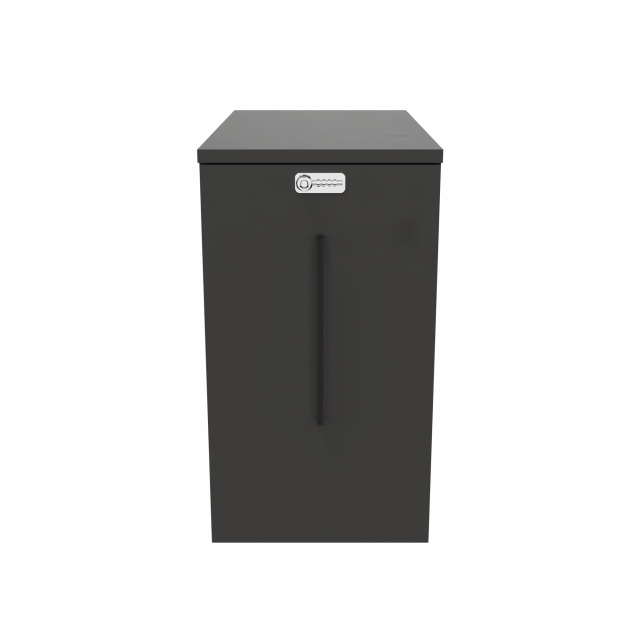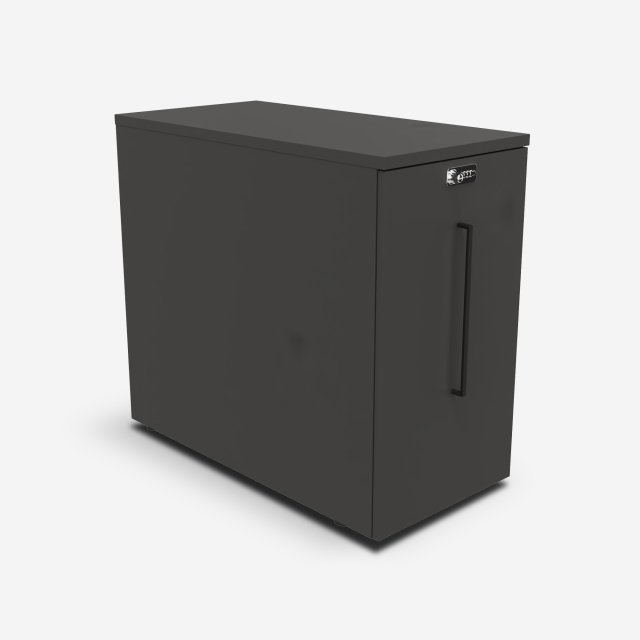 Stomme och front i svart laminat. Placeras till vänster om skrivbordet. Inkl kodlås.