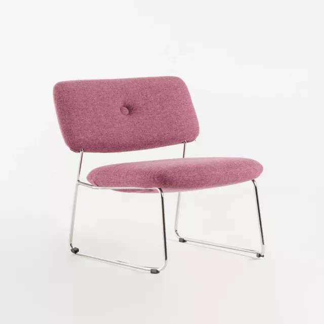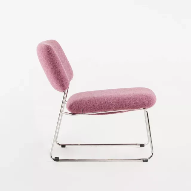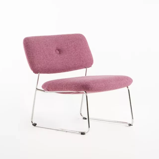 The conference chair Dundra S 71 from Blå Station, designed by Stefan Borselius in 2011, delivers reliable seating for meeting spaces. This pre-owned model is stackable, which simplifies handling and storage. It is upholstered in a purple fabric that adds a clear accent without dominating the room. The neat silhouette integrates easily with existing furniture and varied interior palettes.