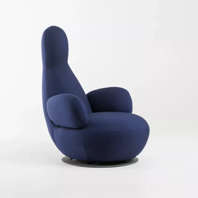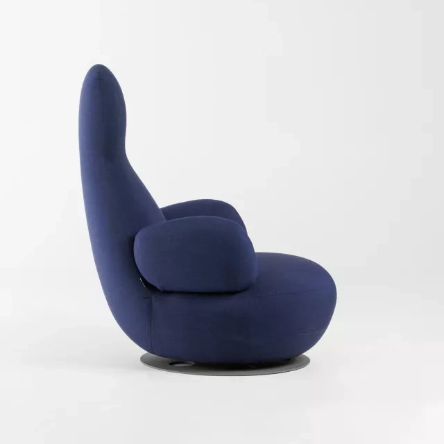 Blå Station's Oppo O50A swivel armchair combines sculptural comfort with verified sustainability for professional interiors. Designed in 2009 by Stefan Borselius, it features a high back and integrated armrests. The Oppo O50A armchair from Blå Station is fully upholstered in blue fabric for a cohesive, welcoming expression. Under the surface, moulded polyurethane foam provides resilient comfort while the nozag sprung steel frame ensures lasting support. This certified choice carries the Nordic Swan Ecolabel and Möbelfakta, aligning with circular procurement goals. The Oppo O50A lounge chair suits reception areas, lounges, quiet rooms and collaborative zones that require durable seating with character. A stable swivel base supports smooth movement during informal meetings and relaxed waiting. Each unit is carefully checked by our technicians to meet professional standards for condition and function. Choose the Blå Station Oppo O50A swivel armchair to combine design credibility with long service life.