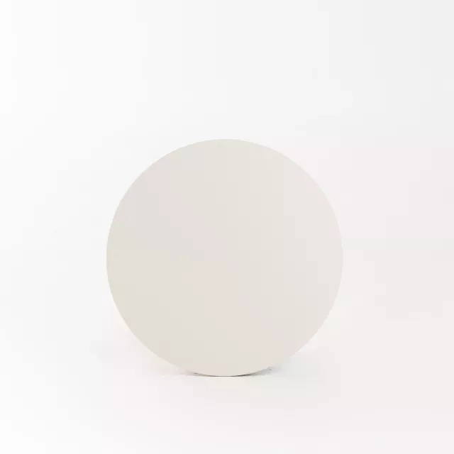This round tabletop features a linoleum surface in colour Mushroom 4176. The muted tone and matte finish bring a calm, professional look to meeting and collaborative areas. As a reused component, it supports circular workspace upgrades with minimal disruption.