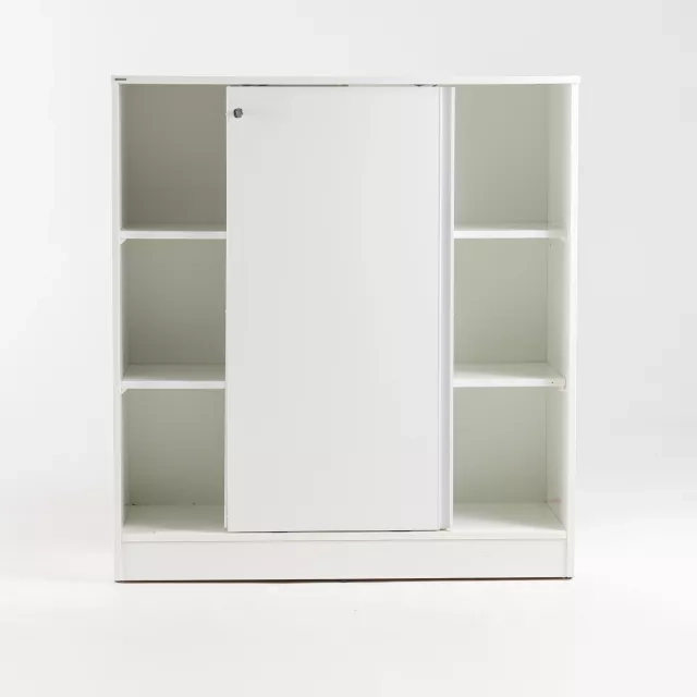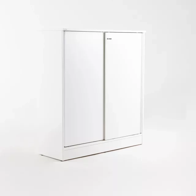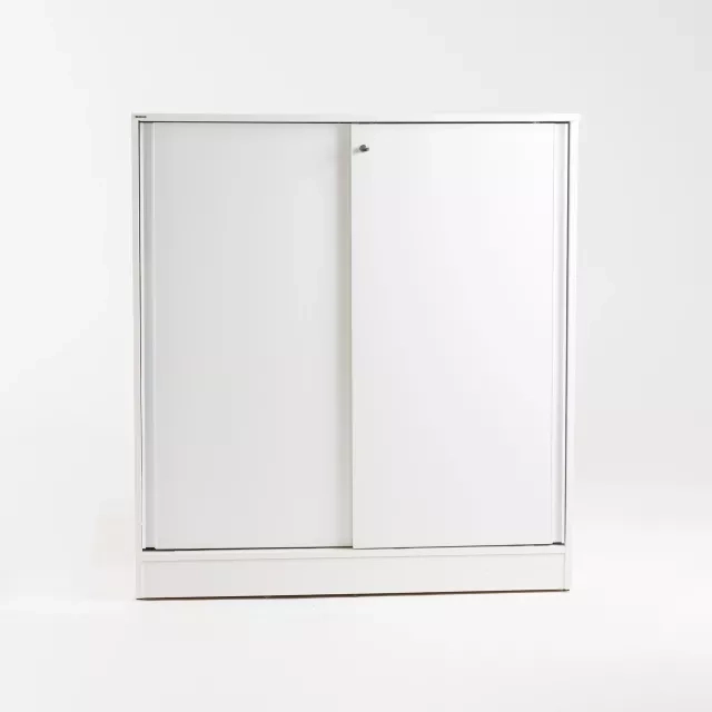The cabinet with sliding doors from Edsbyn is a versatile storage solution ideal for office environments in need of efficient organization. Its lockable feature ensures that sensitive documents and items are securely stored, while the sliding doors offer easy access without taking up excessive space.