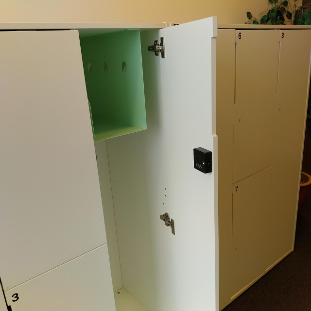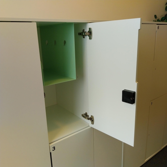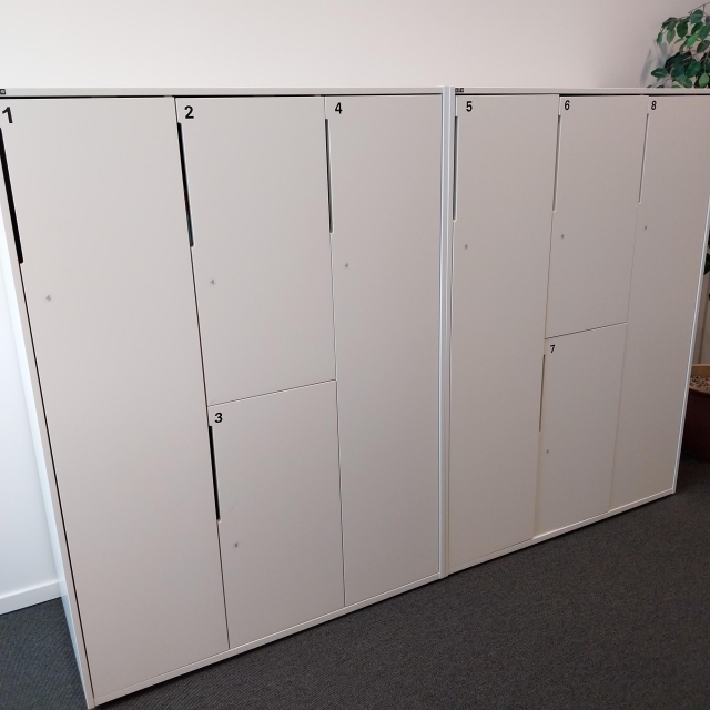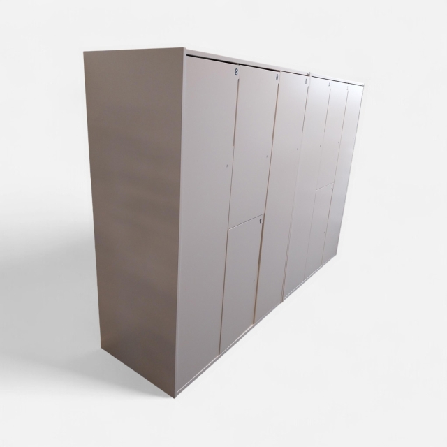 Består av 2 st förvaringar, längd 1070 mm. Totalt 8 st låsbara personliga förvaringar/skåp.