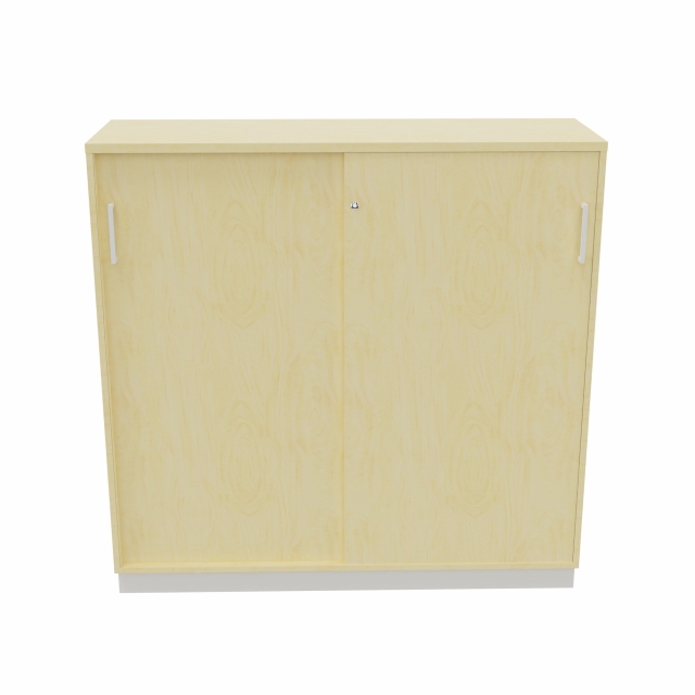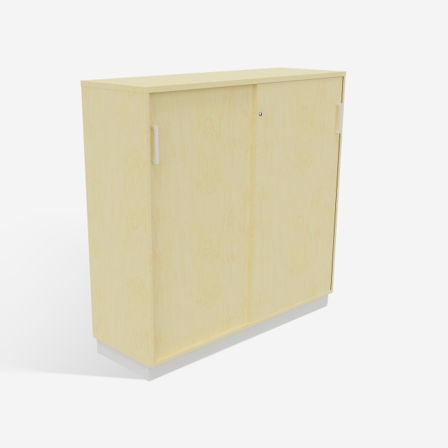 Stomme och front i laminat björk. Plastsockel samt vita handtag (BZ4).